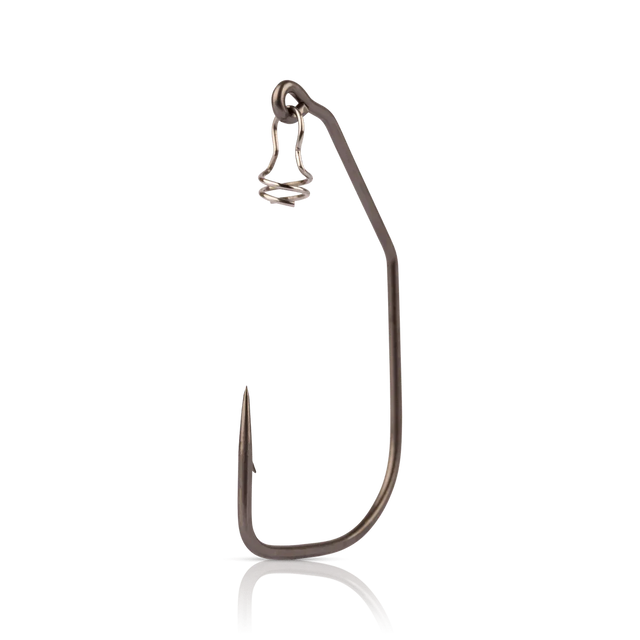 The MUSTAD Infiltrator Swim Hook combines Mustad's Alpha Point technology with 2x strong high-carbon alloy wire to deliver 8-10x greater durability and lightning-fast penetration compared to traditional needlepoint hooks. Its slim, elongated point and wide gap design accommodate bulky soft plastics while keeping the hook point exposed, while a double-down spring bait keeper ensures perfectly straight rigging. A slick TitanX nano-coating maintains sharpness, prevents reflections, and accelerates penetration. The large eyelet provides ample space for the bait keeper, knots, and line clips, making it ideal for a range of soft plastic applications.